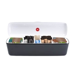 Houd uw koffiehoek netjes en overzichtelijk met de Douwe Egberts Business Line tafelstandaard zwart. Deze stijlvolle standaard biedt vijf aparte vakken om suikersticks, melkcupjes, natrena sachets, plastic lepeltjes en Tea Master Selection theesoorten overzichtelijk te organiseren. De standaard wordt geleverd inclusief inhoud. Dankzij de zwarte afwerking past de standaard moeiteloos in elk interieur, van kantoor tot horecagelegenheid. Zo heeft u altijd al uw koffie- en theebenodigdheden binnen handbereik en blijft de ruimte verzorgd. De Douwe Egberts Business Line tafelstandaard combineert functionaliteit met een nette presentatie voor elke koffiemoment.