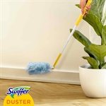 Afstoffen wordt eenvoudig en efficiënt met de Swiffer Duster 360° stofmagneet Kit. De uitschuifbare duster van 90 cm helpt u moeiteloos bij het schoonmaken van hoge en lage plekken. De flexibele kop draait in vier richtingen, om zo het schoonmaken nog makkelijker te maken. Radiatoren, jaloezieën en planken schoonmaken is nog nooit zo makkelijk geweest. De duster vangt stof, haren en allergenen op, dankzij de antistatische werking. De gecoate, pluizige vezels houden het vuil langdurig vast. Tijdens het schoonmaken passen de vezels zich aan, zodat u overal bij kunt en niets overslaat. De kit bevat een Swiffer Duster XXL en één navulstofdoekje.