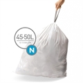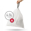 Simplehuman vuilniszakken staan bekend om hun hoogwaardige kwaliteit en perfecte pasvorm. Dankzij de stevige handgrepen met trekband tilt u de zak eenvoudig uit de afvalemmer, bindt u hem snel dicht en gooit u uw afval eenvoudig weg. De zakken zijn gemaakt van extra dik plastic en hebben een dubbele zoom. Scheurtjes en lekkages worden bijna onmogelijk. Met een inhoud van 3 liter zijn ze ideaal voor kleinere afvalbakken. Deze handige dispenser verpakking bevat 40 vuilniszakken, geschikt voor onder andere Simplehuman code T vuilnisbakken.